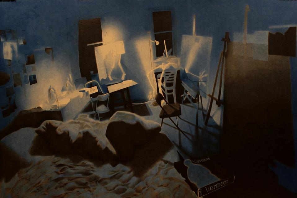 here I tell you a little bit about myself: I was born in the suburb of Beijing, a small village, December 26th 1984, my mother told me it wasn't too much pain when berthing me, but it was a great deal of pain when she was berthing my elder sister, who is 4 years older than me, she was born in the year of monkey, and I was a little mouse. But it took so much care and love and painstakingly paying tuitions during my growing. My parents were local peasants, after all lands got overtaken by government, they raised sheep for some time, I still remember my mother used to hold a little lamp for me to draw it, I love that lamp portrait so much, I named it "Prince", but I lost that sketchbook unfortunately. My father was a carpenter, he actually built our house in traditional Chinese style, with red pillars and beautiful paintings on the wall, and he was always so proud about himself, keep bragging his house was the most beautiful building in the village, especially the front entrance looks extraordinarily, I love my father, I was his proud. And then my parents became butchers, they sold pork in farmers market, they lived harshly for the sake for me and my sister, I didn't realize how heavy money could be until I was the one to carry 8000 Yuan tuition to my high school, from that moment on I started studying hard, and finally made my goal --- I got in Tsinghua University the art academy, which is the best of my country, I studied 4 years there, 2003--2007, in painting major, of course, we had drawing classes also, I started my cross-hatching style since then, but at that time, I wasn't aware of it yet. Actually I started very early in my life, about 9 or 10 years old, I told my mother when I grow up I want to be a great artist, and my mother brought me to Children's Palace, registered in a traditional painting class with Wang, that is a big-belly man with thick beard, his work usually about mountains, cloud-seas, trees and rivers and stoned village tableaus, he was always smiling watching us, he even still remember my childhood portrait of my grandpa lying on bed, he cried when I revisited him. I was new to this world, and it seems there are so many interesting things attracted me, I feel exciting when drawing them, just sketch line drawings, I remember there was once I caught a big insect with wings, and I drew it, and anther time I was drawing white autumn flowers overnight, my mother surprised to see me still drawing there when she got up in the morning. During my mid-school, I was already a little woman, and I fell in love with a young man, he was very lovely and handsome by the way, I thought I was going to marry him when graduated, we were writing letters for 8 years until there was a moment I realized I need to end the relationship for my art, I was very sad about it and regret sometimes, I was drawing him and draw a seaside view showing us sitting side by side, hand in hand, watching the vast sea, that's what I imagined the love scene. During University time, I was reading art history and a lot of literatures, both Chinese and Western, and I fell in love with Vincent Van Gogh, I copied his paintings day after day, I got attracted by his brilliant colors and audacious compositions, when I read his biography, I noticed the frequency of his creation, especially during the time when he was living in the south area of France, he made paintings every day, almost every single day a new piece of art, I love his sun-flowers, I love his starry starry night, I love his battered shoes, I love his flowers and I love his letters with Theo. At that time I was fancying going abroad, especially go to France, go to the countryside where Millet was, when I realized my family couldn't afford that, I cried silently when I was painting, I cried and cried until the moment I accepted reality. But I didn't know one day I would be in America, and see the great Metropolitan Museum of Art, that's because of my husband, my Theo in my life, as He got enrolled in PSU as a PHD student, he brought me to the United States. He is my best friend and faithful supporter, listener and reader, I sincerely appreciate every single day with him, he let me feel so safe and stable, and encourages me keeping doing my art, I am happy with him, I swear wouldn't leave him after I left the art school in Philadelphia, PAFA, the Pennsylvania Academy of the fine arts, I was studying there for 2 years, like Mary Cassatt did, I was standing in the middle of the tremendous cast-hall, I was dumbfounded by the beauty of those ancient sculptures, and I decided only draw, only do drawings for the rest of my life, my favorite cast-drawing during that time was named "Joey", it's a 14th century early Renaissance relief, it's 3 angles walking towards temple, the girl in the front was holding hands together in front of her chest, as if she is holding something, but there is nothing in her hands, I think it's sincerity, the drawing was made to trying to prevent a professor about absent for a year from the school, I wanted to give my drawing to him to not let him go... that's my most beautiful drawing I ever done, 10 years later, I did a copy of it, with orange pencil, but it couldn't reach the height I used to be. I think about the reason of it, it was because I was completely engaged in it, and that was the first time I perceived the relief, the simple beauty and the elegant lines attracted me. i did it on coffee-colored cardboard, and then glue it on gray cardboard, to show the wall color. Now I recall how I was during the two years there, I was always drawing, I was so proud and even arrogant somehow, time was flying so fast.I.got inspired by my drawing teacher Michael Grimaldi, I still think, even now, still think his drawings was the most beautiful works among the academy teachers, I recorded when he was teaching me, and then I was trying to understand him, why he was talking so fast? That's fascinating for me. I admired him and appreciated him. Fo