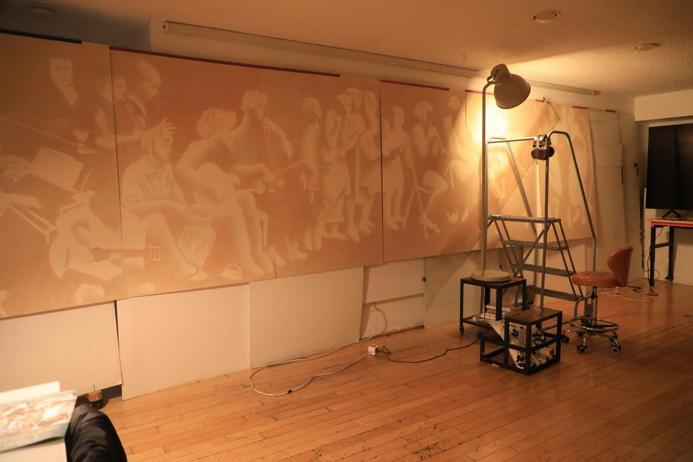 Melancholy: At the beginning of the relationship with Hao, he brought food to my studio, when I was painting, I usually forgot to eat, and that's the first time I got someone look after me so nicely, and I feel so sweet, so nice, and I chose the young man to be my boyfriend. And then we get along for 2.5 years, and then i decided to marry him. I was the one asking marry. He was raised up in a poor family also, as me, I was in a low family. And he was in a small family, his parents were bicycle worker and nurse, his mother was a nurse, and his father was a bicycle maker. He worked in a factory, making bicycles. And he was in charge of making a part of it. I have made my mind, my life just like this, be with Hao, I treasure him, making breakfast for him every day, so he can have some food in his stomach before going to work. He looks after me, and i look after him also. Hao is a nice man. He is playing guitar right now.