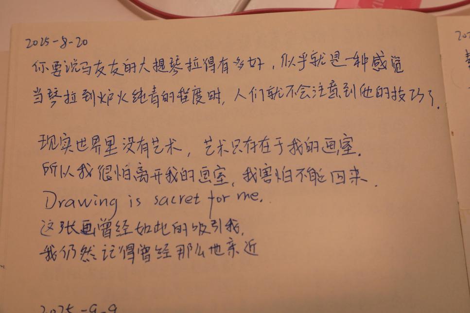 About my art: I am a pencil-work artist, because I swear to make drawing only, and the reason for that because I like the texture of pencil, like sand by seaside, I walk there, feel the sand underneath my feet, leaving footsteps behind me. I work with mechanical pencil, because it save me time to sharp it, and because it can reach max level of fineness, especially when it's a classical art theme, for example, my "Street-Musicians" series. I do cross-hatching gradually, rather then put darkest dark immediately, I perceive light and shadow gradually, especially the strongest contrast between light and shadow, it takes time to understand why somewhere looks stronger than elsewhere, it's the earliest lesson I learnt since childhood, which is if the light comes from right, then the shadow will be on the opposite direction, the farther it's distant from the light-source, the weaker it appears, and contours under the dark areas will be blurry, as it retreating into the background. I do not use cotton or stump to smear pencil marks, I just build up with my mechanical pencil, because I prefer leave some texture of cross-hatching on the paper. My drawing paper are board mat using in frame-shop, it's strong enough to let me do cross-hatching for 50 layers. I do vertically and diagonally, and then I turn my paper horizontally, to be able to do cross-hatching from the opposite direction. Gradually I have trained my eyes to continue working when it's turned horizontally. I love my printing pictures, it teaches me to observe carefully, and be patient during working. I know there are differences between photos and actual drawings, and I do not try to mimic to be the same as what I trying to learn, especially when some contours look so sharp that it must look like a paper-cut if I make the shape sharply, that's where I decided to smear the contours, to make it fading away and retreating back until disappeared gradually, so that you could feel the space around the figure. I love classical paintings, especially the Renaissance period of time, I got amazed by the calm, peaceful, serenely mood in the pictures, including Greek sculptures can refract the atmosphere of something holy and beautiful. I noticed in classical paintings, there are blurry contours retreating around the figures, to step back into the darker background. I always darken the background to be darker gray, because in reality, no matter where I look at, there are backgrounds around whatever I am looking at, and there is no absolute whiteness background, so I darken the sky and the foreground darker, gradually, of course. The areas the feet stepping on will be dramatically dark, it's the darkest dark in the picture. I still haven't figure out darkest dark mixed with oil, the technique is unknown for me, I put it aside right now, I will find the way later on. I do not like charcoal and white chalk, because my logic is the build up light and shadow effect gradually, and indirectly, rather than dark with charcoal at once, also because I do not like make powders full of my hand. In order to protect my drawing during work, I put a transparent plastic paper on top, fix with clips on top, so it wouldn't got blurred unnoticed. I keep my drawings with me, because sometimes I miss a specific piece, so I took it up, mount it on the wall, and take a look, sometimes redraw it or make some changes. Just like right now, I hang my earlier 5 years ago work, and still make necessary changes, looking at those faces and figures I did, I still feel the passion I used to travel with. Each drawing is a gurney. I wouldn't try to sell my work right now, because I am accumulating works right now, so far I have finished one fifth of my goal, I still have 200 drawing papers, I will finish each piece with all my effort and sincerity, as I promised to my pencil "Pinky" I will continue my career, no matter there is applause or not, no matter it is a glory or gloomy in front, I will do my work all by myself, until I am ready for my exhibition some day. I see hope in my work, I know it's not easy all the way until here, so much difficulties and harsh time had passed, I see a glory sun warming my heart, with tears. My aim is to become a great artist, how to define it then? I think the answer is simple: a great artist who can makes great artworks. I am a conservative person, I wouldn't do modern art, my art is very limited, but within the limitness I have found infinite meanings, that's why I am still so eager with every single pencil mark I put on paper. I like modern art too, so beautiful and creative, but I choose to make my art my own way. My goal is to draw better than Leonardo DaVinci, I believe I can make it some day. So when I am drawing another 30 years, I look back, as I sifting through my works, I could proudly point out some masterpieces. I know I can do well, or badly, through time, I will make progress, and I will feel the depth of artwork like in blurry water. When I am swimming, I feel released from the pressure of my art, just like take a break, doing something completely different. I am learning a book about Van Gogh with an audible book, I need to stimulate my thoughts a little, so that my mind wouldn't hover in old memories, especially some hurtful ones. As long as there is no war, it's a nice day, and my normal working day is the greatest gift for my life. I thank who made it for me. I thank you, who care about me and checking my website sometimes. I love you Josh, I made a Chinese name for you: 小泽 handwriting by Melancholy Xiong Xuan on April 25, 2025.