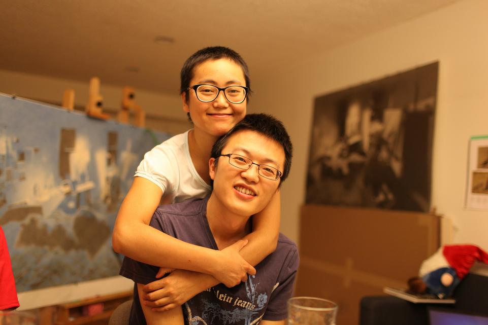 Melancholy: Almost perfect scores, he got into the best university of the country in Beijing, that's Tsinghua University, i got in from the artschool, that's how I met him. I got high school examination with art, and then with culture examination too. I was a winner in art part. And then we took a class together, we became teammates in a group, that's how I knew him. But at that time I was in relationship with my first boyfriend, Bin.So i didn't care him, didn't feel anything from him, because my heart was full of that young soldier. And then the last year of the school yard, I met him again at the library, and I think: oh, this young man is so nice. He is good enough for me. He can support my art. So I chose him and left my first boyfriend. I was a little judgeful and scornful at that time, and I regret my attitude a lot. If I didn't met Hao, I couldn't come to the United States, I couldn't visit the Metropolitan Museum of Art, I couldn't open my mind, I couldn't go to PAFA, do cast-drawing there, and decided just drawing entire life, that's a big decision for me. And I still keep the promise, keep drawing every day. So Hao changed me, Hao is the captain of my ship. i have a very small ship, a white ship, with a fan, and he is the captain.