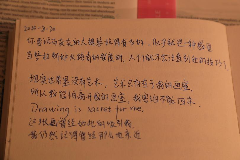 Melancholy's hand-writing translate for people who do not know how to use google translate, on 2025-8-23: I do not like people are unfair since born, your blood, your genetics, your sense of knowledge, your talent, as well as your knowing about art, everything are different since born, why the first-class seat is far much more comfortable than third-class seat on the same airplane? Why great artist must be a blessed, selected man with dramatic talent, and it seems like he knows it since childhood, like Michelangelo devoted to art until end of his life? Why for so long the drawing I understand just limited as single line contours, just like a sketch, why nobody tell me what drawing is? Until one day I notice Leonardo Da Vinci's drawing is like a clay sculpture falling in water, it's blurry and ambiguous, but the dark shadow is deep and exact, and I also noticed that it is almost life-sized, until then I understand the dancing of black and white is the turning of form in space, turning or still, not only the dark determination will melt in darkness, the contour of light areas will change too, seems like firefly is leading them, sending light-green light in darkness. Why poor child in poor family shouldn't learn art? Why people say that the first thing should be food and clothing on basic level, and thereby they shouldn't talk about literature and art? Why they also say that art is entertainment for first-class, thereby third-class people shouldn't touch it? I dreamed of a painting of an orange cube since young, from then i climb the roof of my home to draw the beautiful sunset with pastel, my parents loved me so much since beginning, and I have a little sister looking after me since I was young. Because of that time, they could only become the lowest level of society, my mother was the first-prize in her high-school class, but she had to back home be a peasant, so her college-dream becomes a illusion, so she cried when holding my college information letter in hands, as if I made it for her. My parents carry along our little home with their thin shoulders, when I told my mother that I like drawing, they didn't cut down my wing of art, instead, they bring me to Children's Palace, I got the beginning education of art there, and I had a happy childhood there. It's a pity my beginning drawings are lost, I still remember my first drawings on the wall, the figures have only one nostril in the middle. The time of childhood seems like a transparent amber holding that moment. i am a girl since born, it's impossible to be born again to be a male, and I do not want to stop this current living, and be reborn again in a rich family, I like my current myself, I like my current life, I like my little studio, I like riding my little red bicycle around after I finish my drawing for today, I like my swimming suit with fish on it, and I like listening touching music at the beginning of the day, and when I am take a break, I can take a delicious cookie looks like a butterfly, and I like a lot more ……I even couldn't count them. I don't want to die now, and then be born again as a new baby, i treasure myself now, artist's hands need practice since young, no matter the sense of art, or the control of pencil, it's articulation from little by little, nobody can draw like Raphael all a sudden, all efforts are worthy and meaningful. So don't look down yourself, and don't complain your parents didn't give you a better environment, you learn a lot when growing up, that's why people should learn to be grateful. My mother died last month, and I decide do a small portrait for her, I got her kind, tenderness and patience from her personality, that's why I could run marathon of art. I am 40 years old now, I know it's so precious to have courage and will, my heart is like a stone, unmovable and still. In the following decade, it's going to be pure drawing time. If you really like my art, you can look at my drawings on my website on a big screen TV, it's a quite different experience from cellphone checking, you can buy a connection-wire connect your TV and your computer, so you can see my drawings now. Since I notice Leonardo Da Vinci's drawing is life-sized, I notice it's so much more difficult to draw large size than smaller size, and it requires more careful attention and time. So I tell myself: the great-wall is not finished within one day, it's accumulation of one brick after another brick, so don't be hurry, it will be done by time, it will be finished. I remember the first year of my university time, Dan holding my hands, told me that i appreciate your courage, but be yourself in time. Thank you, Dan, now I see what you mean. I remember a ballerina's words often, she said: one day not practice, you know; two days not practicing, your classmates know; three days not practicing, audience know. I encourage myself like this often. Dan also told me: you can choose art, but you have to pay price. I choose not to have a child, leaving all my time for my pencil. because it's a great deal of time and care to raise up a child, and it's severe heaviness of responsibility, and it's unparalleled happiness, it is a loss of my life. I couldn't experience how it feels to be a mother any more. I saw some children at the airport, they are playful and happy, and very cute. But I can draw them, I want to draw a little face crying, full of innocent tears. I like Degas' work all the time, drawings, pastels or paintings, i like them all, because he described their sincere heart, he pointing to the little girls in the background, say, these little rats do not have future, I know what he mean, he is saying they do not have hope due to their poverty. But I don't agree, look at them, everyone is wearing pink tutu, pink ballet-shoes, tie a big butterfly on the waist, how nicely the beauty of being young, how envious they are, you can feel a lot by just turning around in front of the dancing mirror, isn't it? Xuanxuan show me her sketch cartoo