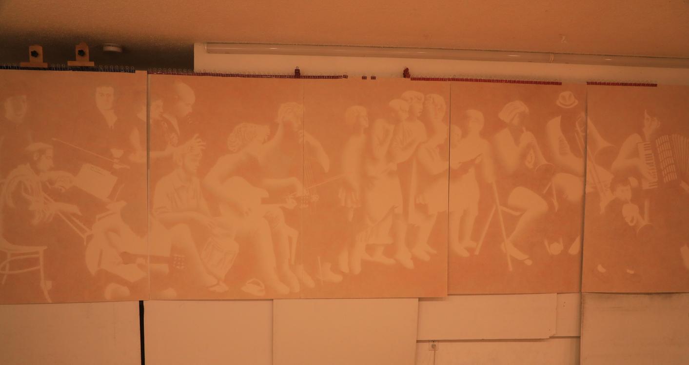 Musicians-5 is going on now, 60 by240 inches, color pencil on paper, starting September 15th.